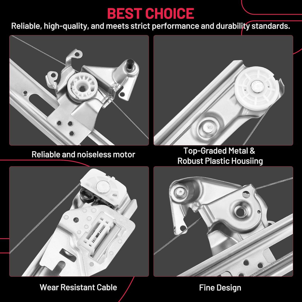 【Premium Quality】 This window regulator and motor assembly feature significant enhancements over the factory part, providing a higher level of reliability. It incorporates tension springs to effectively resist cable reel binding caused by prolonged use. Additionally, it is equipped with advanced cable guides to eliminate high cable tension and reduce cable stress.