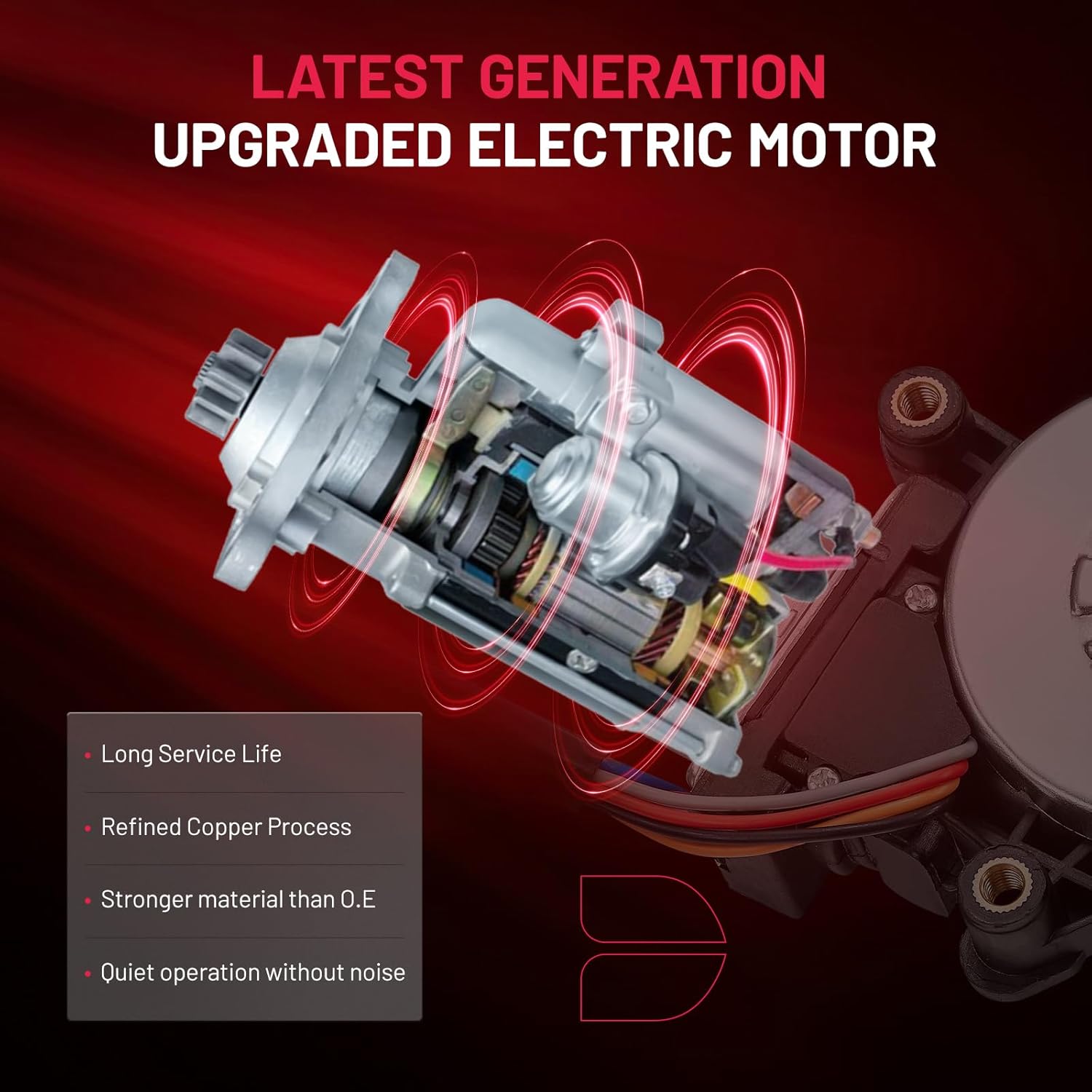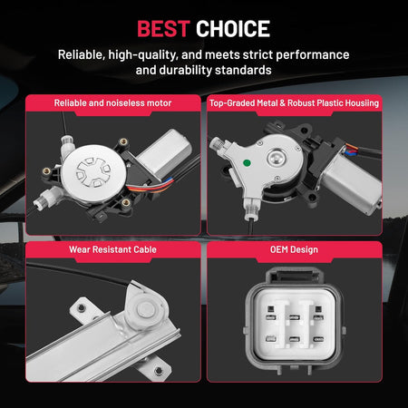 【Premium Quality】 This window regulator and motor assembly feature significant enhancements over the factory part, providing a higher level of reliability. It incorporates tension springs to effectively resist cable reel binding caused by prolonged use. Additionally, it is equipped with advanced cable guides to eliminate high cable tension and reduce cable stress.