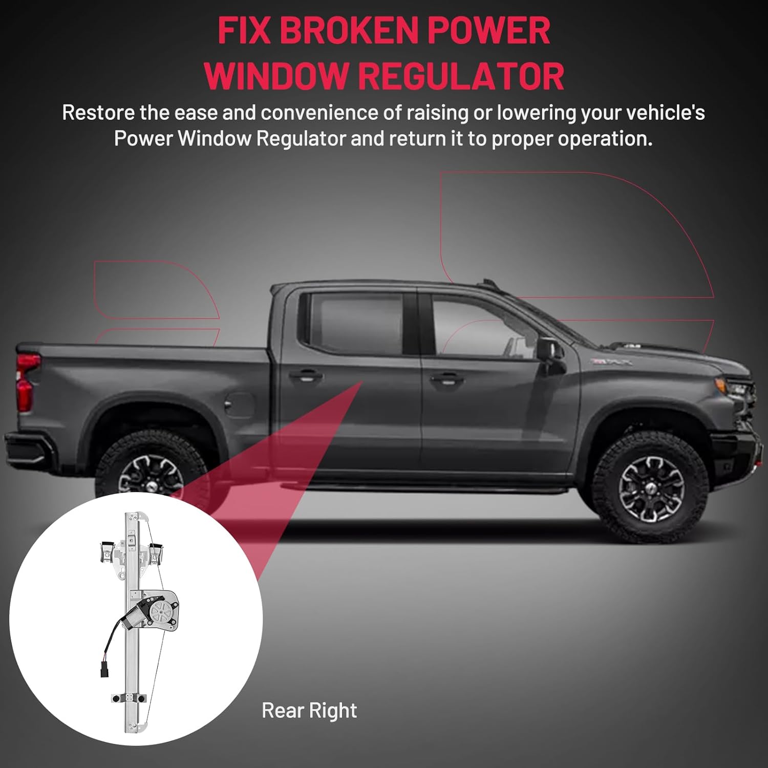 【12-Month Warranty】If the window regulator and the motor fail, crack, stop working, or have any other problems, contact us through amazon message to apply the service of carefree REPLACEMENT.