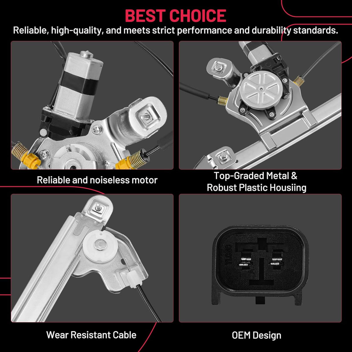 【Premium Quality】 This window regulator and motor assembly feature significant enhancements over the factory part, providing a higher level of reliability. It incorporates tension springs to effectively resist cable reel binding caused by prolonged use. Additionally, it is equipped with advanced cable guides to eliminate high cable tension and reduce cable stress.