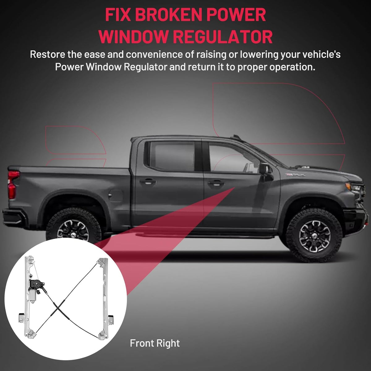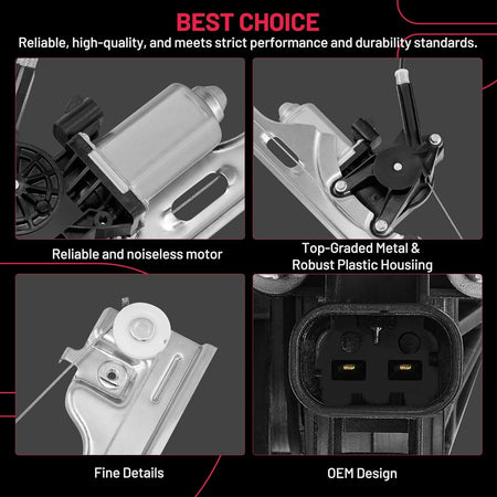 【12-Month Warranty】If the window regulator and the motor fail, crack, stop working, or have any other problems, contact us through amazon message to apply the service of carefree REPLACEMENT.