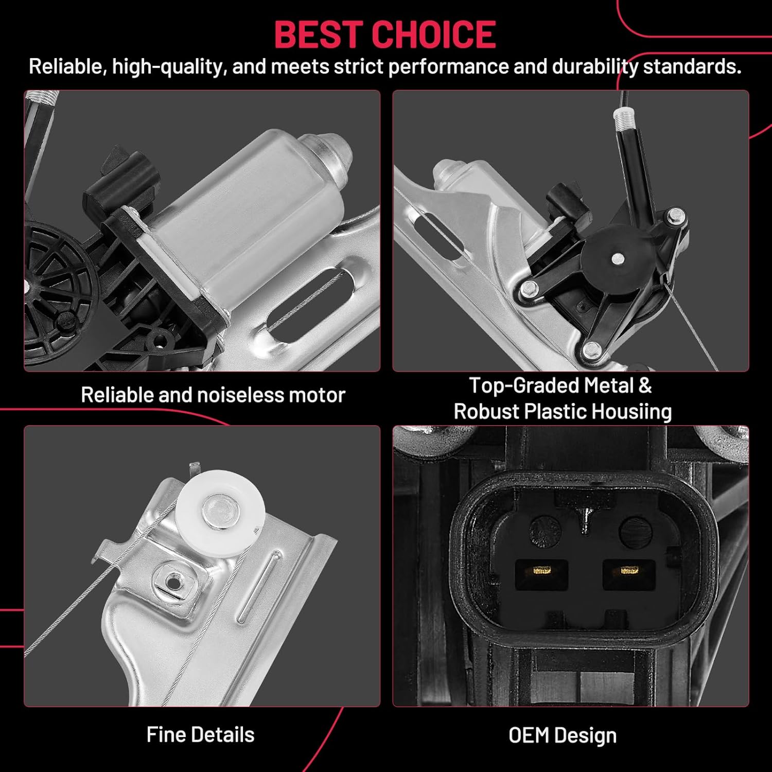 【Premium Quality】 This window regulator and motor assembly feature significant enhancements over the factory part, providing a higher level of reliability. It incorporates tension springs to effectively resist cable reel binding caused by prolonged use. Additionally, it is equipped with advanced cable guides to eliminate high cable tension and reduce cable stress.