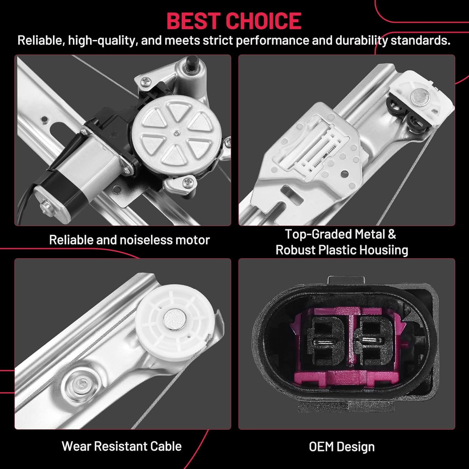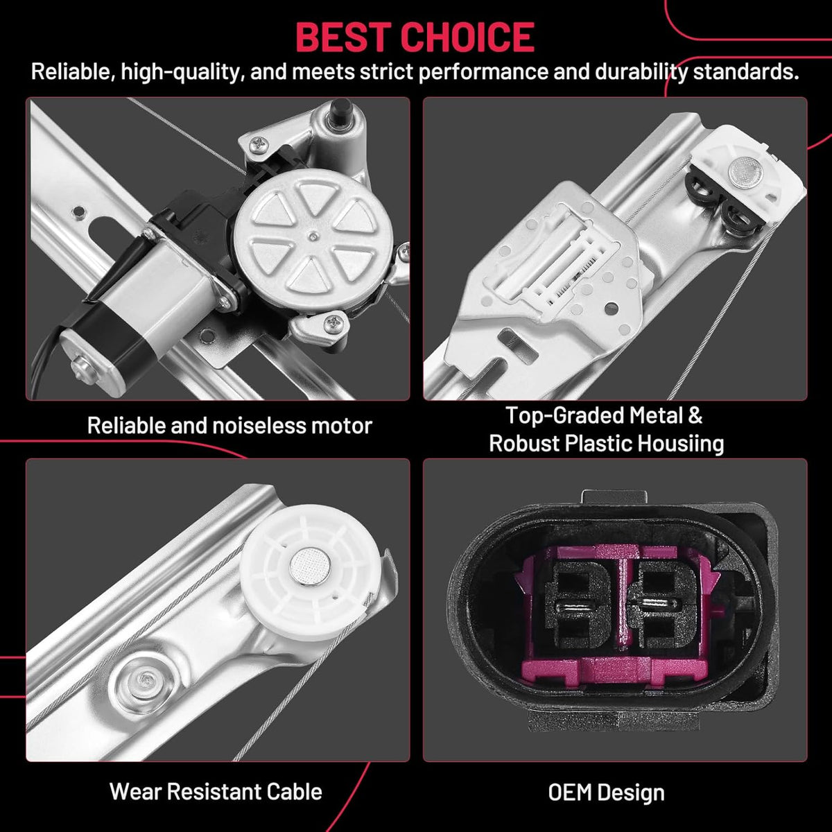 【Premium Quality】 This window regulator and motor assembly feature significant enhancements over the factory part, providing a higher level of reliability. It incorporates tension springs to effectively resist cable reel binding caused by prolonged use. Additionally, it is equipped with advanced cable guides to eliminate high cable tension and reduce cable stress.
