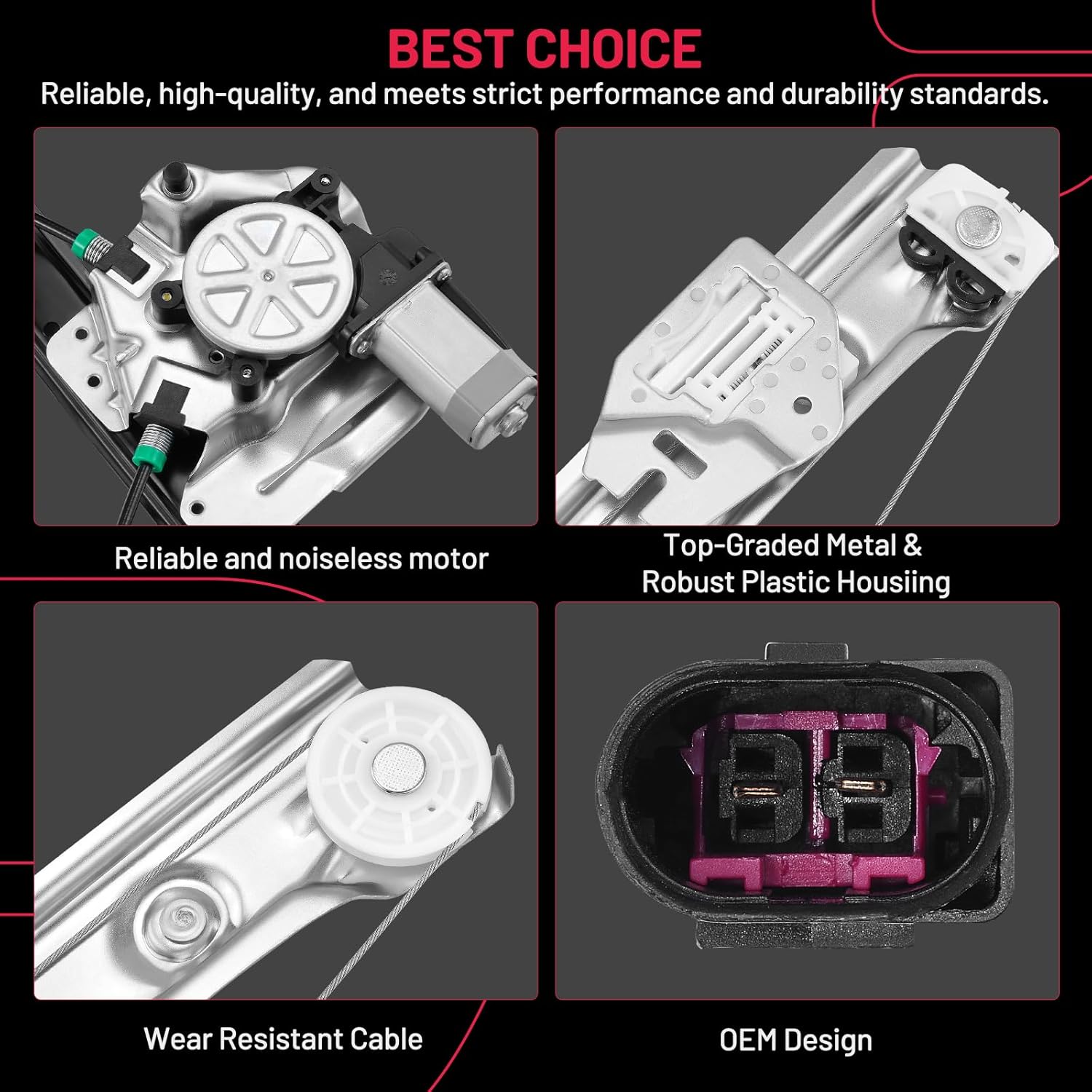 【Premium Quality】 This window regulator and motor assembly feature significant enhancements over the factory part, providing a higher level of reliability. It incorporates tension springs to effectively resist cable reel binding caused by prolonged use. Additionally, it is equipped with advanced cable guides to eliminate high cable tension and reduce cable stress.