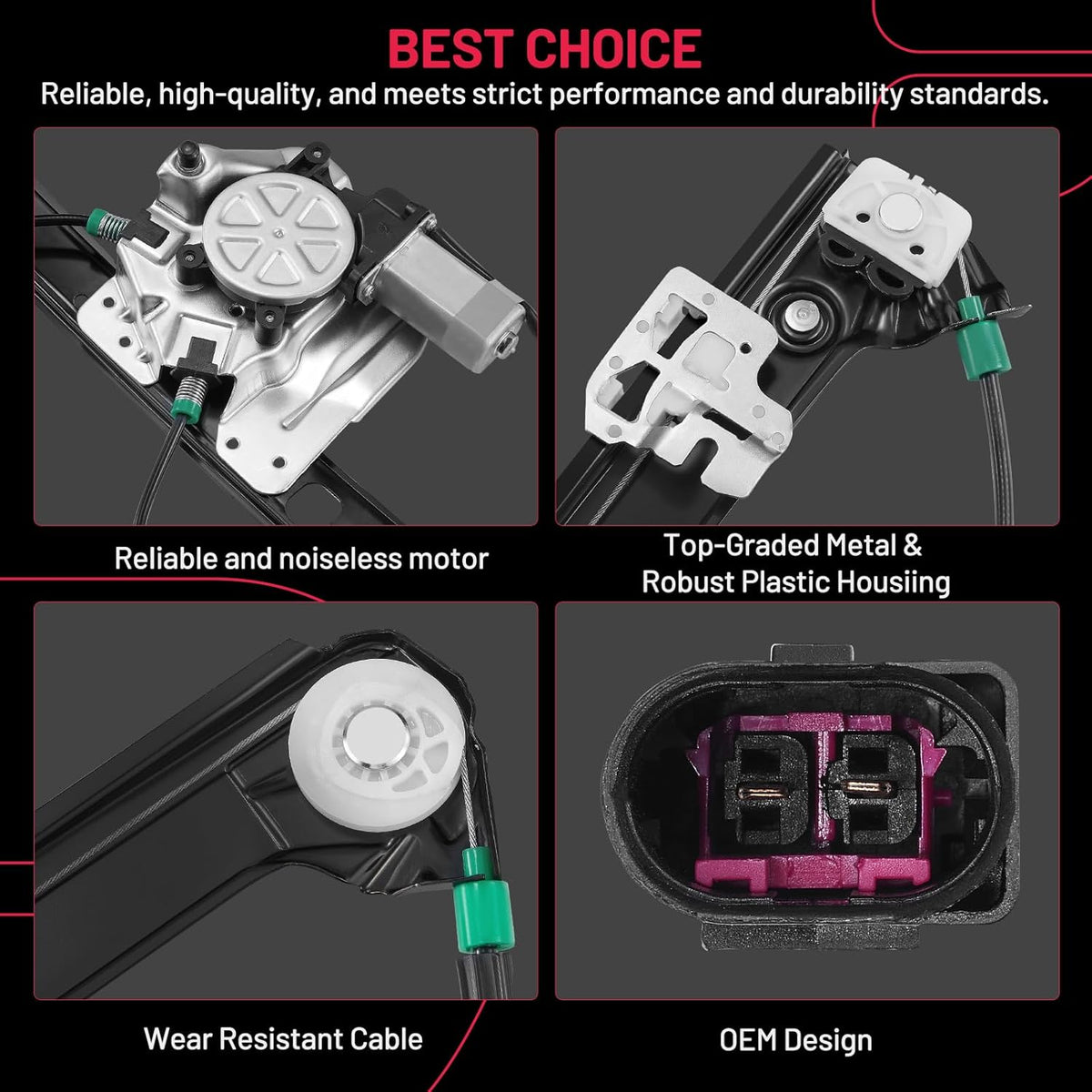 【Premium Quality】 This window regulator and motor assembly feature significant enhancements over the factory part, providing a higher level of reliability. It incorporates tension springs to effectively resist cable reel binding caused by prolonged use. Additionally, it is equipped with advanced cable guides to eliminate high cable tension and reduce cable stress.
