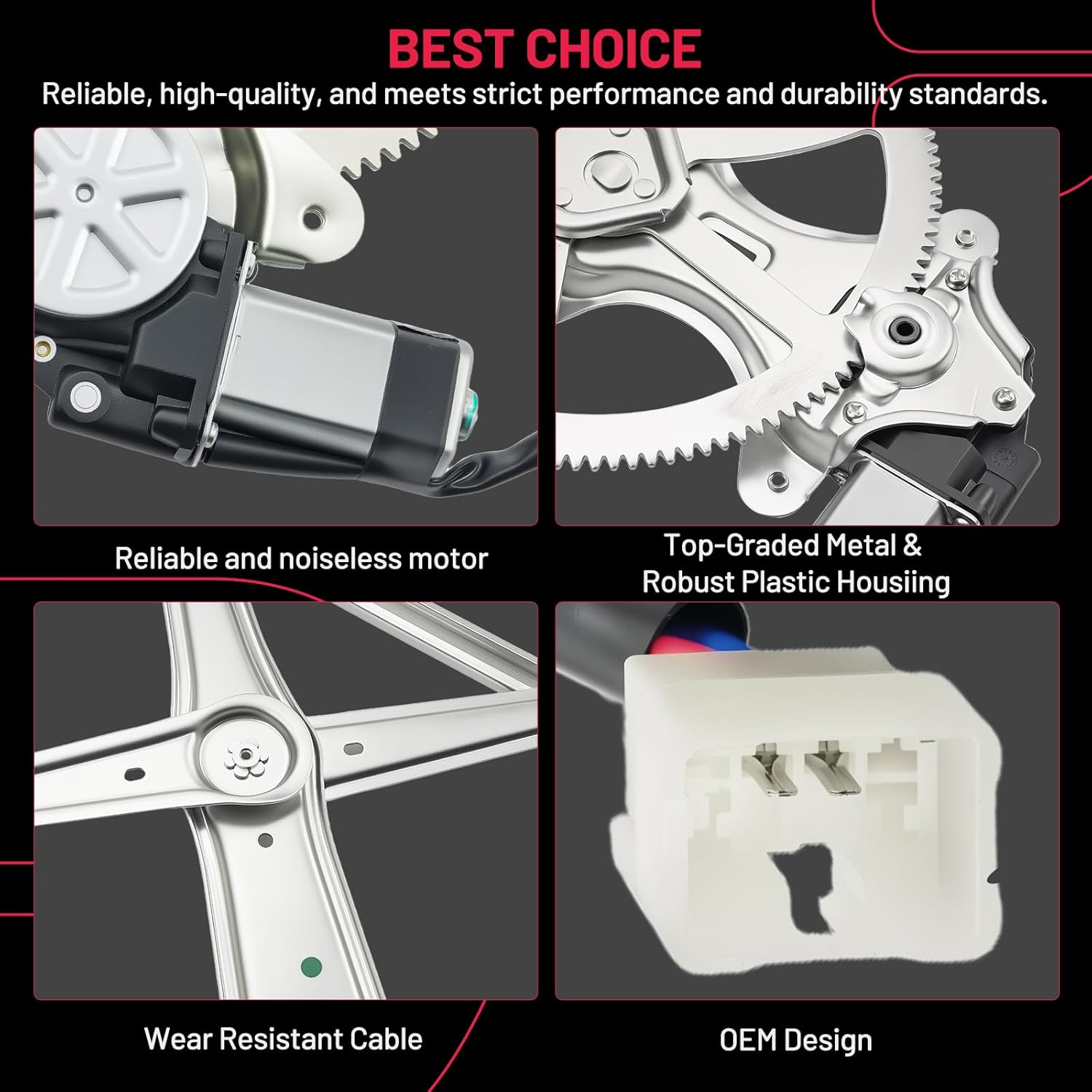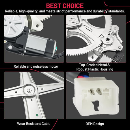 【Premium Quality】 This window regulator and motor assembly feature significant enhancements over the factory part, providing a higher level of reliability. It incorporates tension springs to effectively resist cable reel binding caused by prolonged use. Additionally, it is equipped with advanced cable guides to eliminate high cable tension and reduce cable stress.