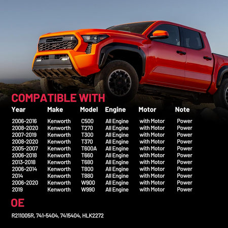 【Compatible Vehicles】Compatible with Kenworth C500 2006-2016, Compatible with Kenworth T270 2008-2020, Compatible with Kenworth T300 2007-2019, Compatible with Kenworth T370 2008-2020, Compatible with Kenworth T600A 2005-2007, Compatible with Kenworth T660 2006-2018, Compatible with Kenworth T680 2013-2018, Compatible with Kenworth T800 2006-2014, Compatible with Kenworth T880 2014, Compatible with Kenworth W900 2006-2020, Compatible with Kenworth W990 2019