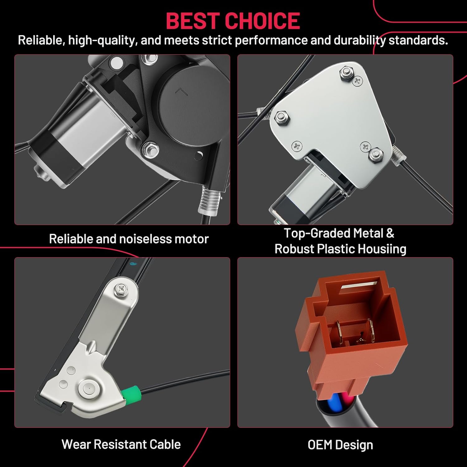 【Premium Quality】 This window regulator and motor assembly feature significant enhancements over the factory part, providing a higher level of reliability. It incorporates tension springs to effectively resist cable reel binding caused by prolonged use. Additionally, it is equipped with advanced cable guides to eliminate high cable tension and reduce cable stress.