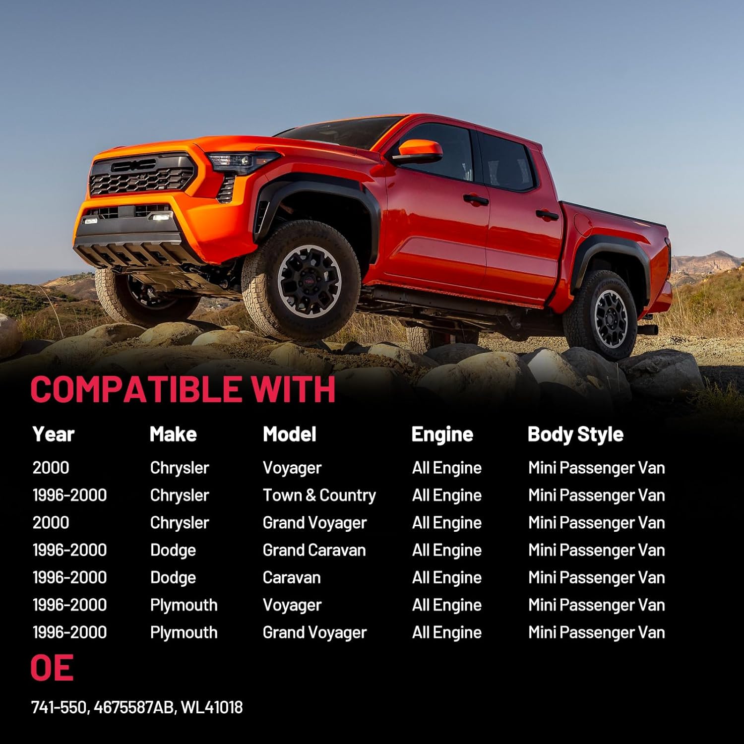 【Compatible Vehicles】 Compatible with Chrysler Voyager 2000, Compatible with 1996-2000 Chrysler Town & Country, Compatible with 2000 Chrysler Grand Voyager, Compatible with 1996-2000 Dodge Grand Caravan, Compatible with 1996-2000 Dodge Caravan, Compatible with 1996-2000 Plymouth Voyager, Compatible with 1996-2000 Plymouth Grand Voyager