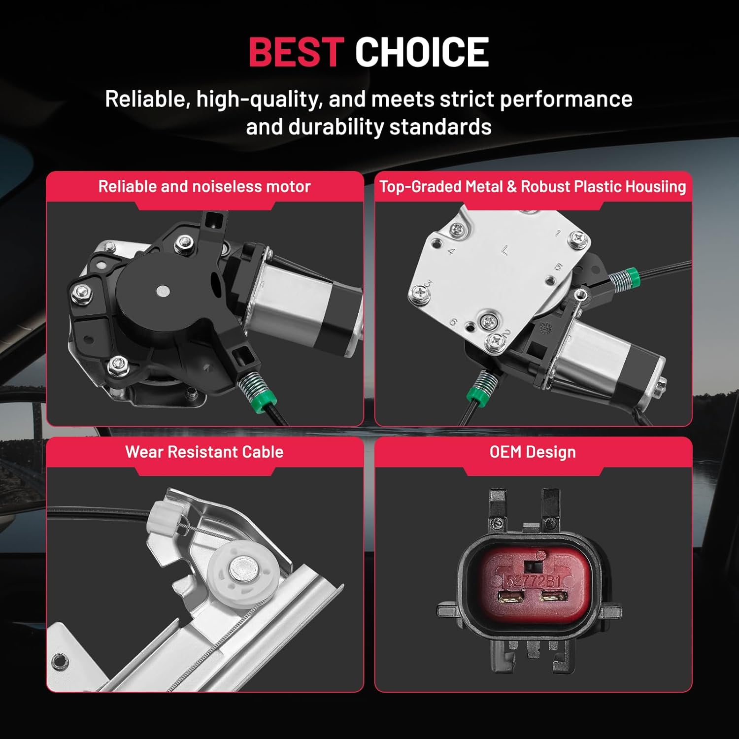 【12-Month Customer Service】If the window regulator and the motor fail, crack, stop working, or have any other problems, contact us through amazon message to apply the service of carefree REPLACEMENT.