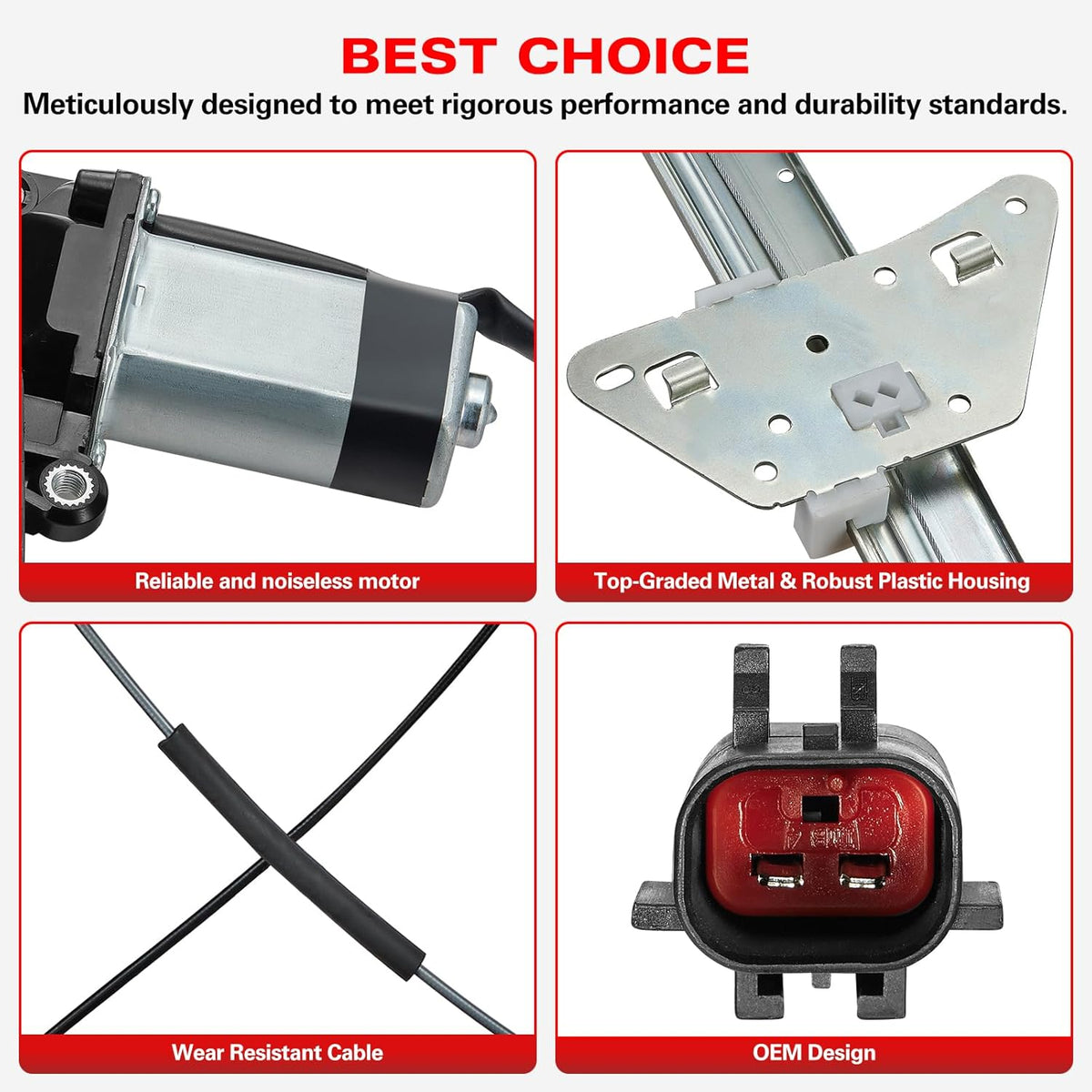 【12-Month Warranty】If the window regulator and motor fails, cracks, stops working or any other problems, simply contact us through amazon message to apply the service of carefree REPLACEMENT.
