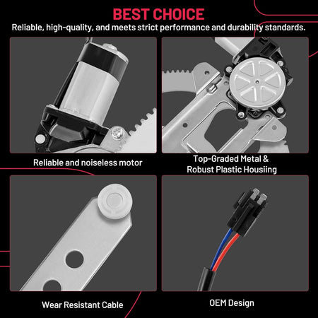 【12-Month Warranty】If the window regulator and the motor fail, crack, stop working, or have any other problems, contact us through amazon message to apply the service of carefree REPLACEMENT.