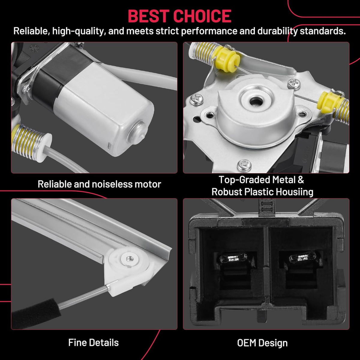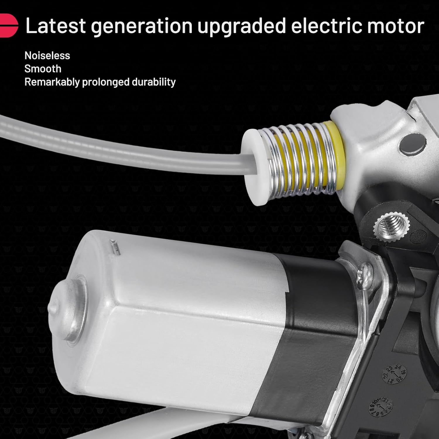 【Premium Quality】 This window regulator and motor assembly feature significant enhancements over the factory part, providing a higher level of reliability. It incorporates tension springs to effectively resist cable reel binding caused by prolonged use. Additionally, it is equipped with advanced cable guides to eliminate high cable tension and reduce cable stress.