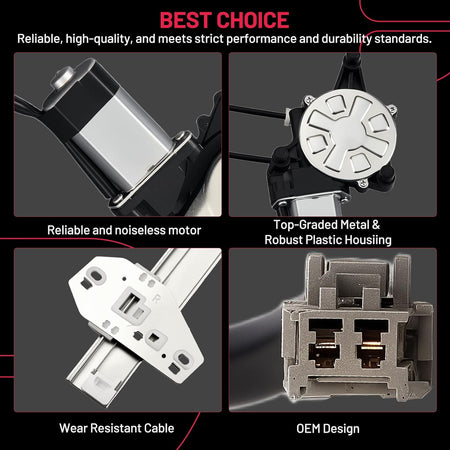 【Premium Quality】 This window regulator and motor assembly feature significant enhancements over the factory part, providing a higher level of reliability. It incorporates tension springs to effectively resist cable reel binding caused by prolonged use. Additionally, it is equipped with advanced cable guides to eliminate high cable tension and reduce cable stress.