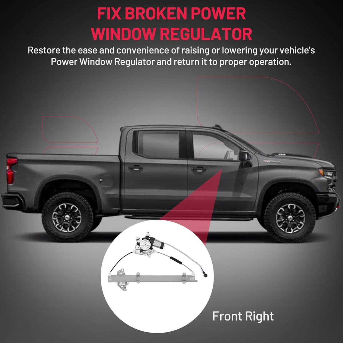 【12-Month Customer Service】If the window regulator and the motor fail, crack, stop working, or have any other problems, contact us through amazon message to apply the service of carefree REPLACEMENT.