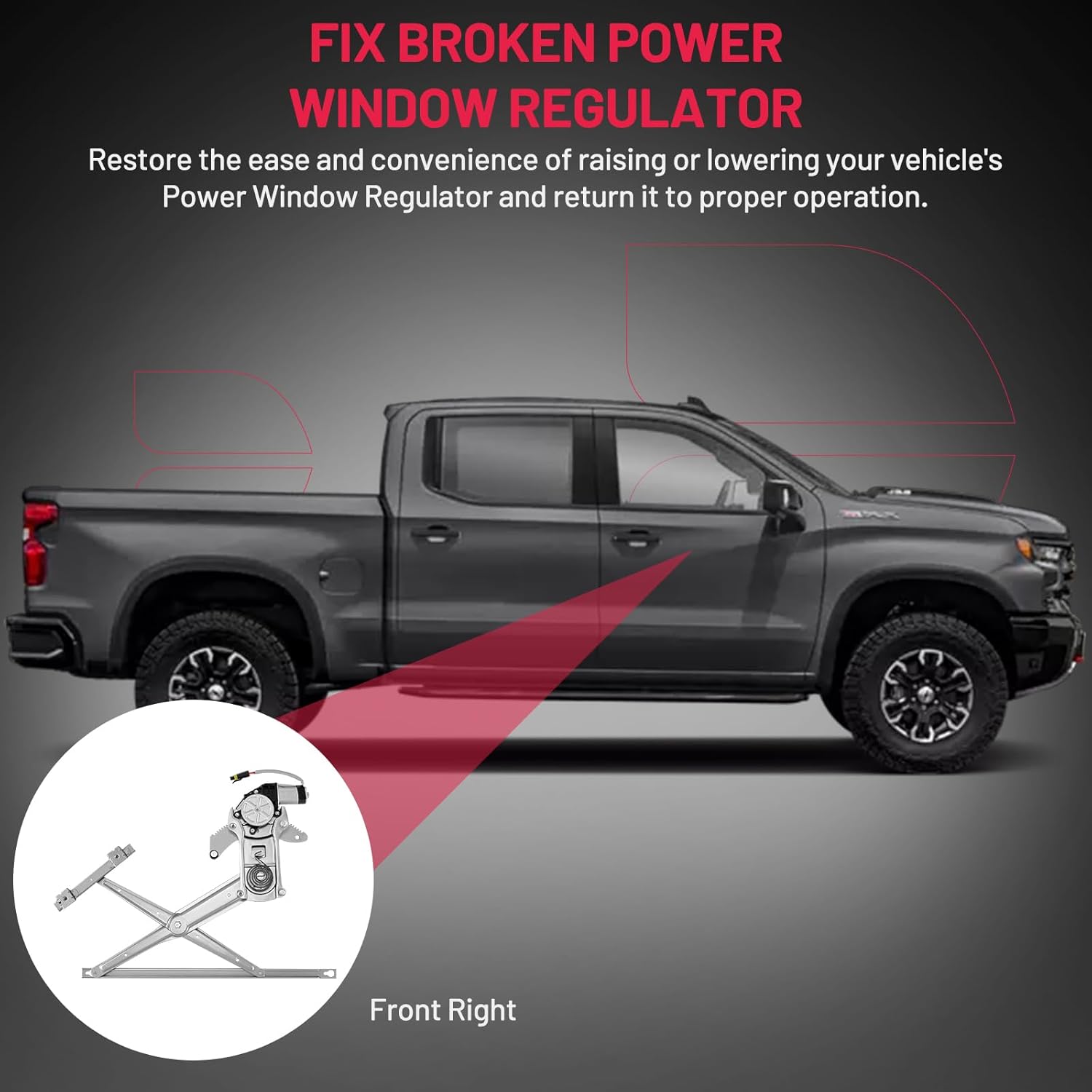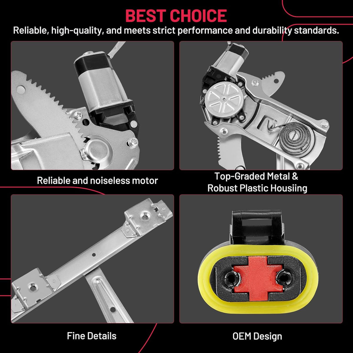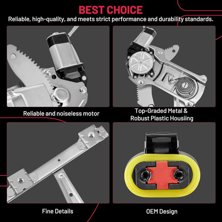 【12-Month Warranty】If the window regulator and the motor fail, crack, stop working, or have any other problems, contact us through amazon message to apply the service of carefree REPLACEMENT.