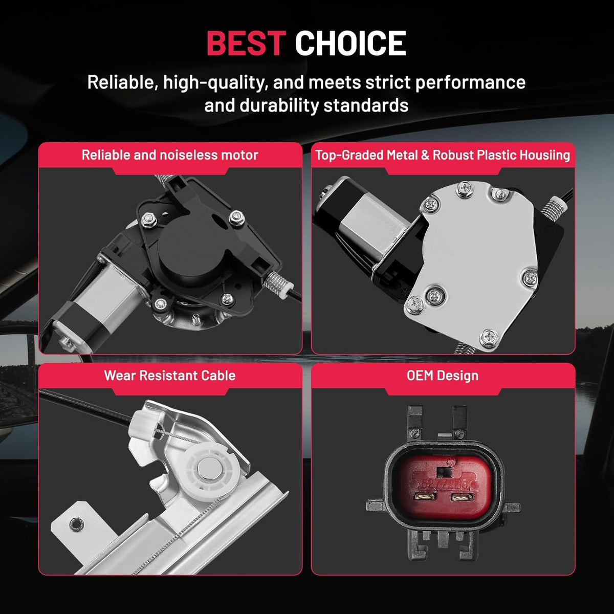 【12-Month Customer Service】If the window regulator and the motor fail, crack, stop working, or have any other problems, contact us through amazon message to apply the service of carefree REPLACEMENT.