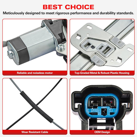 【12-Month Warranty】If the window regulator and motor fails, cracks, stops working or any other problems, simply contact us through amazon message to apply the service of carefree REPLACEMENT.