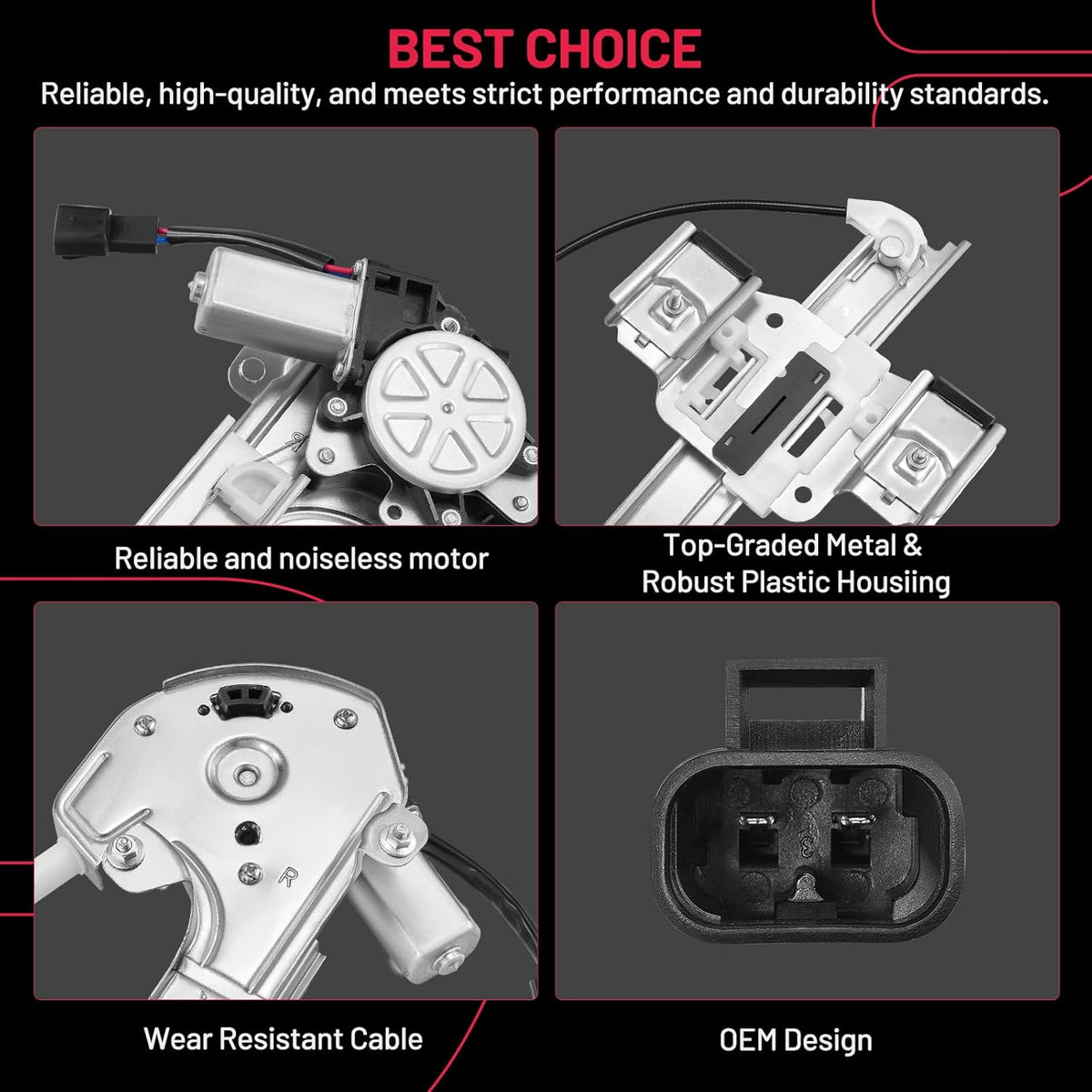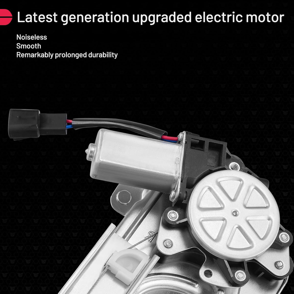 【Premium Quality】 This window regulator and motor assembly feature significant enhancements over the factory part, providing a higher level of reliability. It incorporates tension springs to effectively resist cable reel binding caused by prolonged use. Additionally, it is equipped with advanced cable guides to eliminate high cable tension and reduce cable stress.