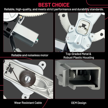 【Premium Quality】 This window regulator and motor assembly feature significant enhancements over the factory part, providing a higher level of reliability. It incorporates tension springs to effectively resist cable reel binding caused by prolonged use. Additionally, it is equipped with advanced cable guides to eliminate high cable tension and reduce cable stress.