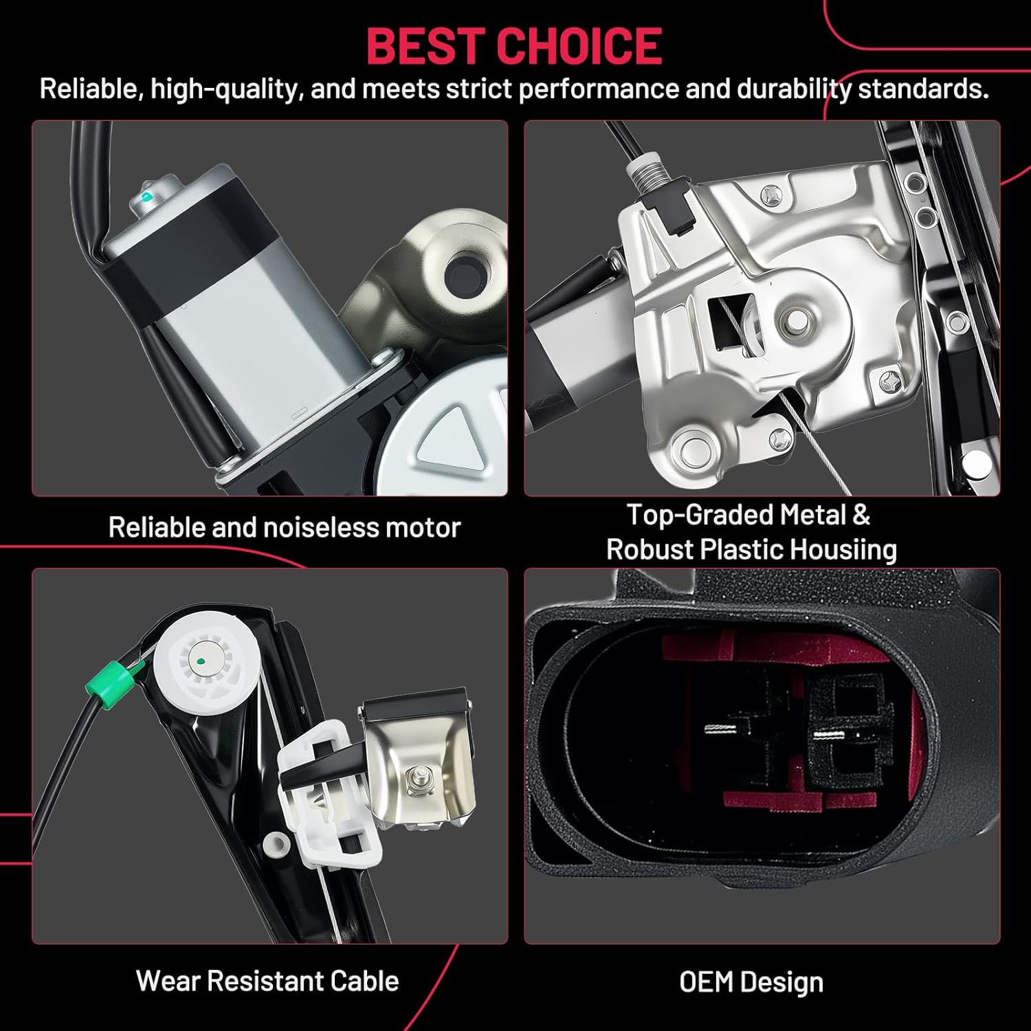 【Premium Quality】 This window regulator and motor assembly feature significant enhancements over the factory part, providing a higher level of reliability. It incorporates tension springs to effectively resist cable reel binding caused by prolonged use. Additionally, it is equipped with advanced cable guides to eliminate high cable tension and reduce cable stress.