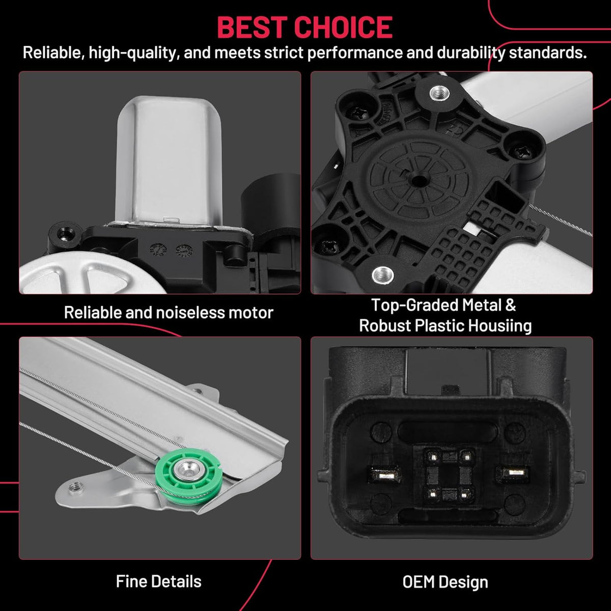 【Premium Quality】 This window regulator and motor assembly feature significant enhancements over the factory part, providing a higher level of reliability. It incorporates tension springs to effectively resist cable reel binding caused by prolonged use. Additionally, it is equipped with advanced cable guides to eliminate high cable tension and reduce cable stress.