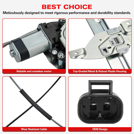 【12-Month Warranty】If the window regulator and motor fails, cracks, stops working or any other problems, simply contact us through amazon message to apply the service of carefree REPLACEMENT.