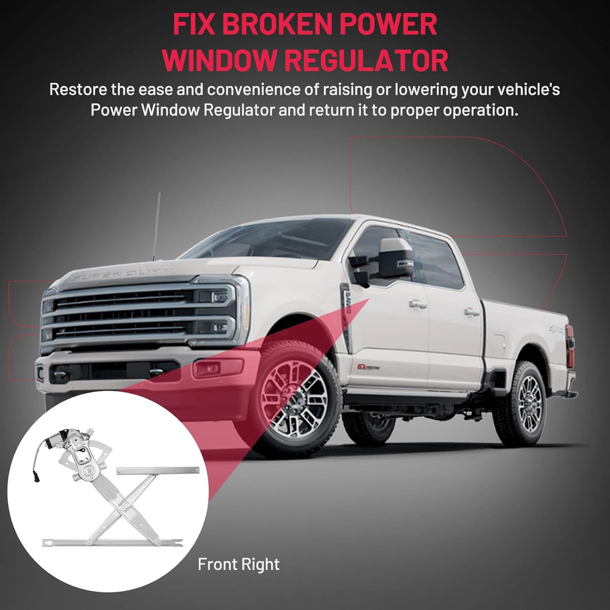 【12-Month Warranty】If the window regulator and the motor fail, crack, stop working, or have any other problems, contact us through amazon message to apply the service of carefree REPLACEMENT.