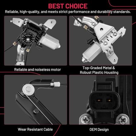【Premium Quality】 This window regulator and motor assembly feature significant enhancements over the factory part, providing a higher level of reliability. It incorporates tension springs to effectively resist cable reel binding caused by prolonged use. Additionally, it is equipped with advanced cable guides to eliminate high cable tension and reduce cable stress.