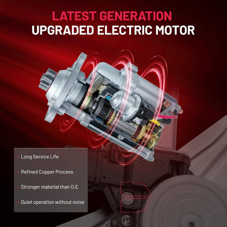 【Premium Quality】 This window regulator and motor assembly feature significant enhancements over the factory part, providing a higher level of reliability. It incorporates tension springs to effectively resist cable reel binding caused by prolonged use. Additionally, it is equipped with advanced cable guides to eliminate high cable tension and reduce cable stress.