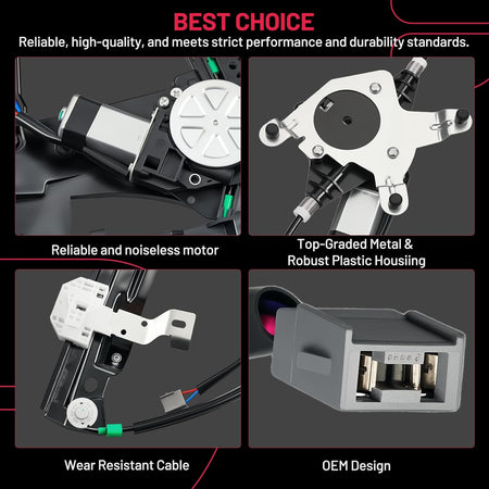 【Premium Quality】 This window regulator and motor assembly feature significant enhancements over the factory part, providing a higher level of reliability. It incorporates tension springs to effectively resist cable reel binding caused by prolonged use. Additionally, it is equipped with advanced cable guides to eliminate high cable tension and reduce cable stress.