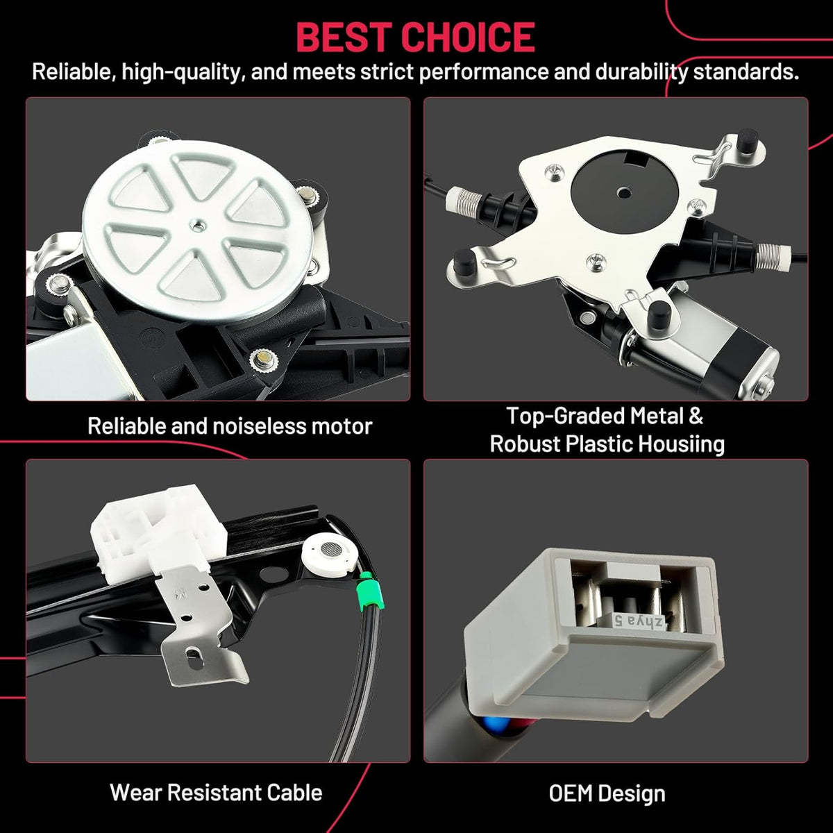 【Premium Quality】 This window regulator and motor assembly feature significant enhancements over the factory part, providing a higher level of reliability. It incorporates tension springs to effectively resist cable reel binding caused by prolonged use. Additionally, it is equipped with advanced cable guides to eliminate high cable tension and reduce cable stress.