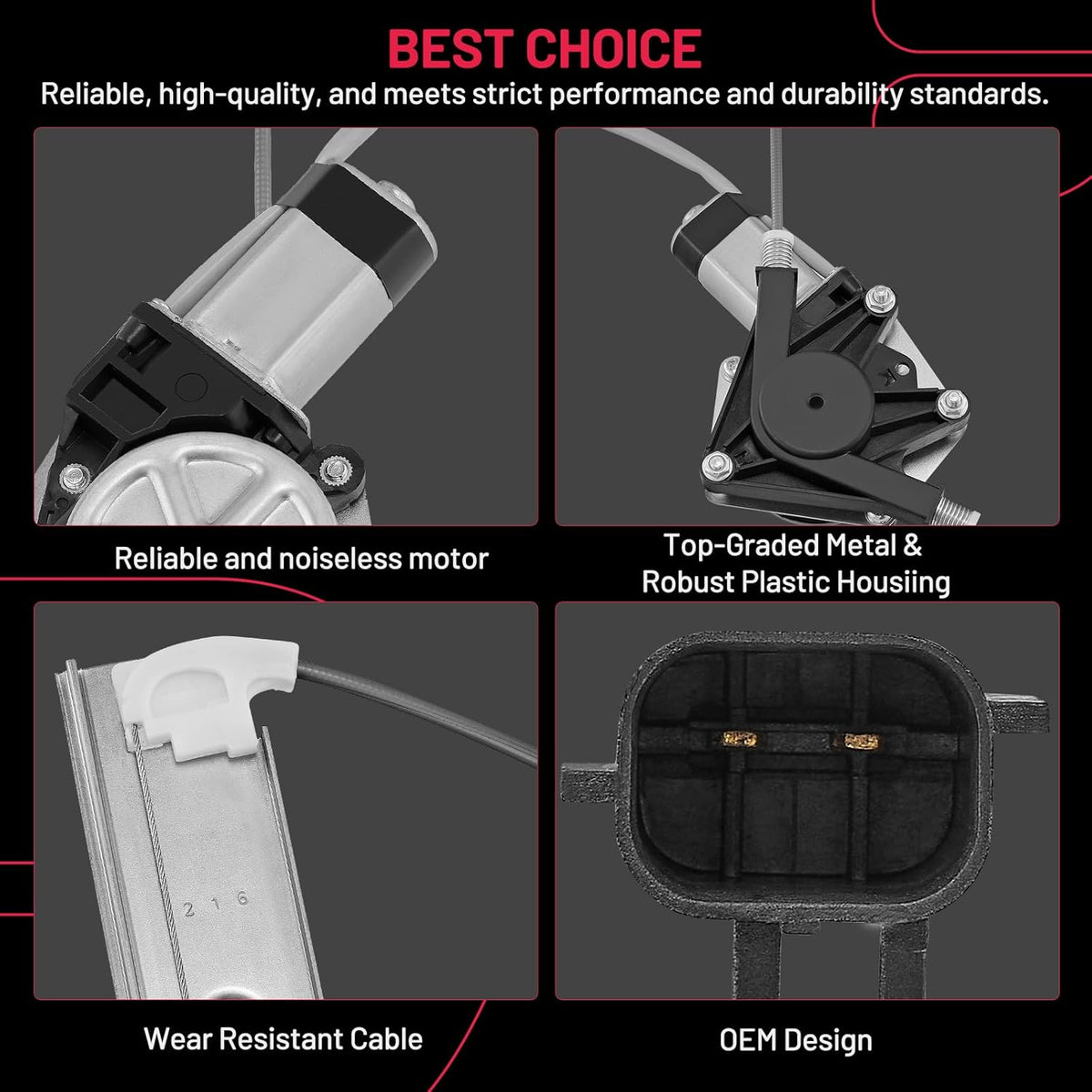 【Premium Quality】 This window regulator and motor assembly feature significant enhancements over the factory part, providing a higher level of reliability. It incorporates tension springs to effectively resist cable reel binding caused by prolonged use. Additionally, it is equipped with advanced cable guides to eliminate high cable tension and reduce cable stress.