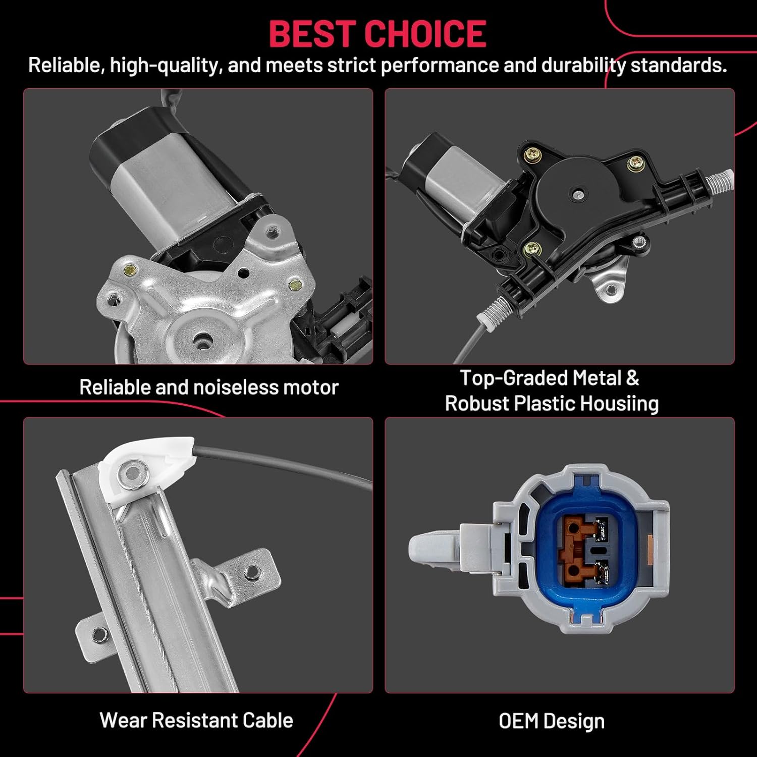 【Premium Quality】 This window regulator and motor assembly feature significant enhancements over the factory part, providing a higher level of reliability. It incorporates tension springs to effectively resist cable reel binding caused by prolonged use. Additionally, it is equipped with advanced cable guides to eliminate high cable tension and reduce cable stress.