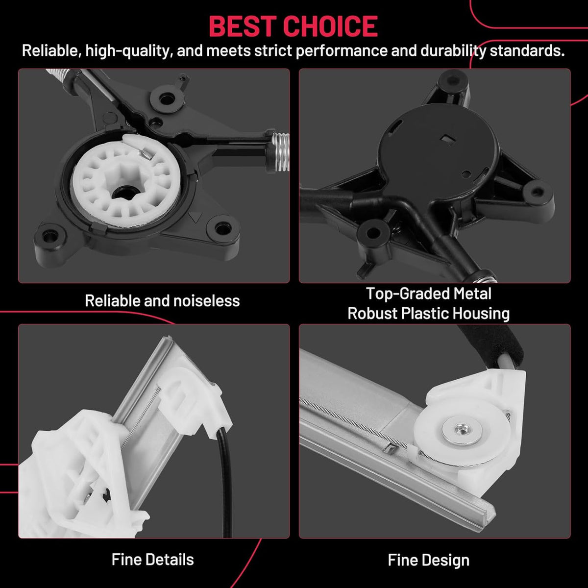 【Premium Quality】 This window regulator and motor assembly feature significant enhancements over the factory part, providing a higher level of reliability. It incorporates tension springs to effectively resist cable reel binding caused by prolonged use. Additionally, it is equipped with advanced cable guides to eliminate high cable tension and reduce cable stress.