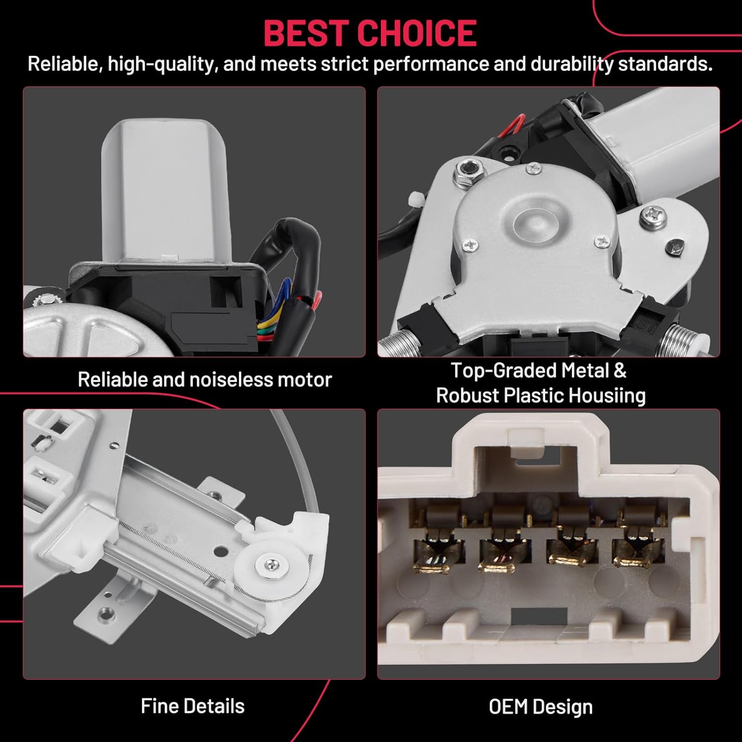【Premium Quality】 This window regulator and motor assembly feature significant enhancements over the factory part, providing a higher level of reliability. It incorporates tension springs to effectively resist cable reel binding caused by prolonged use. Additionally, it is equipped with advanced cable guides to eliminate high cable tension and reduce cable stress.