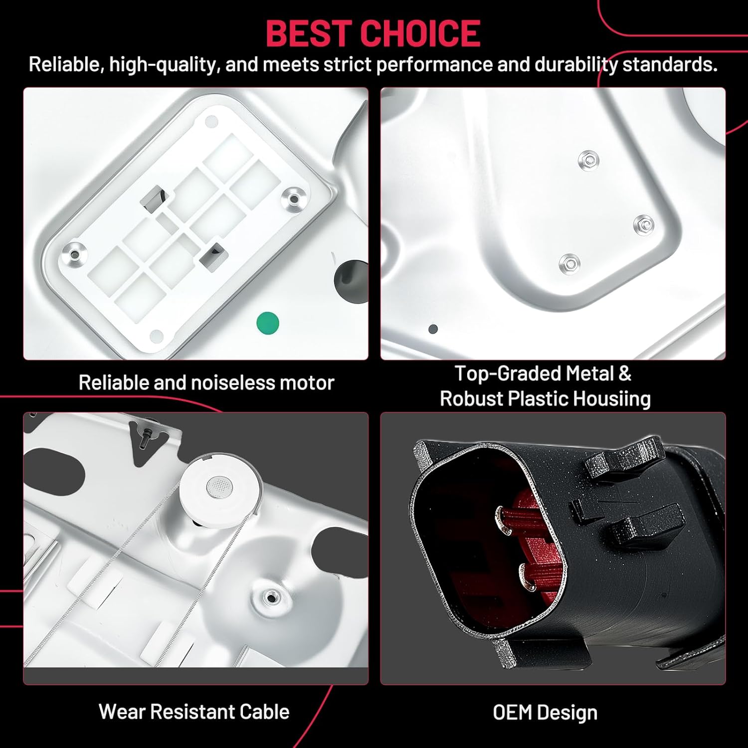 【Premium Quality】 This window regulator and motor assembly feature significant enhancements over the factory part, providing a higher level of reliability. It incorporates tension springs to effectively resist cable reel binding caused by prolonged use. Additionally, it is equipped with advanced cable guides to eliminate high cable tension and reduce cable stress.