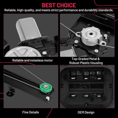 【Premium Quality】 This window regulator and motor assembly feature significant enhancements over the factory part, providing a higher level of reliability. It incorporates tension springs to effectively resist cable reel binding caused by prolonged use. Additionally, it is equipped with advanced cable guides to eliminate high cable tension and reduce cable stress.