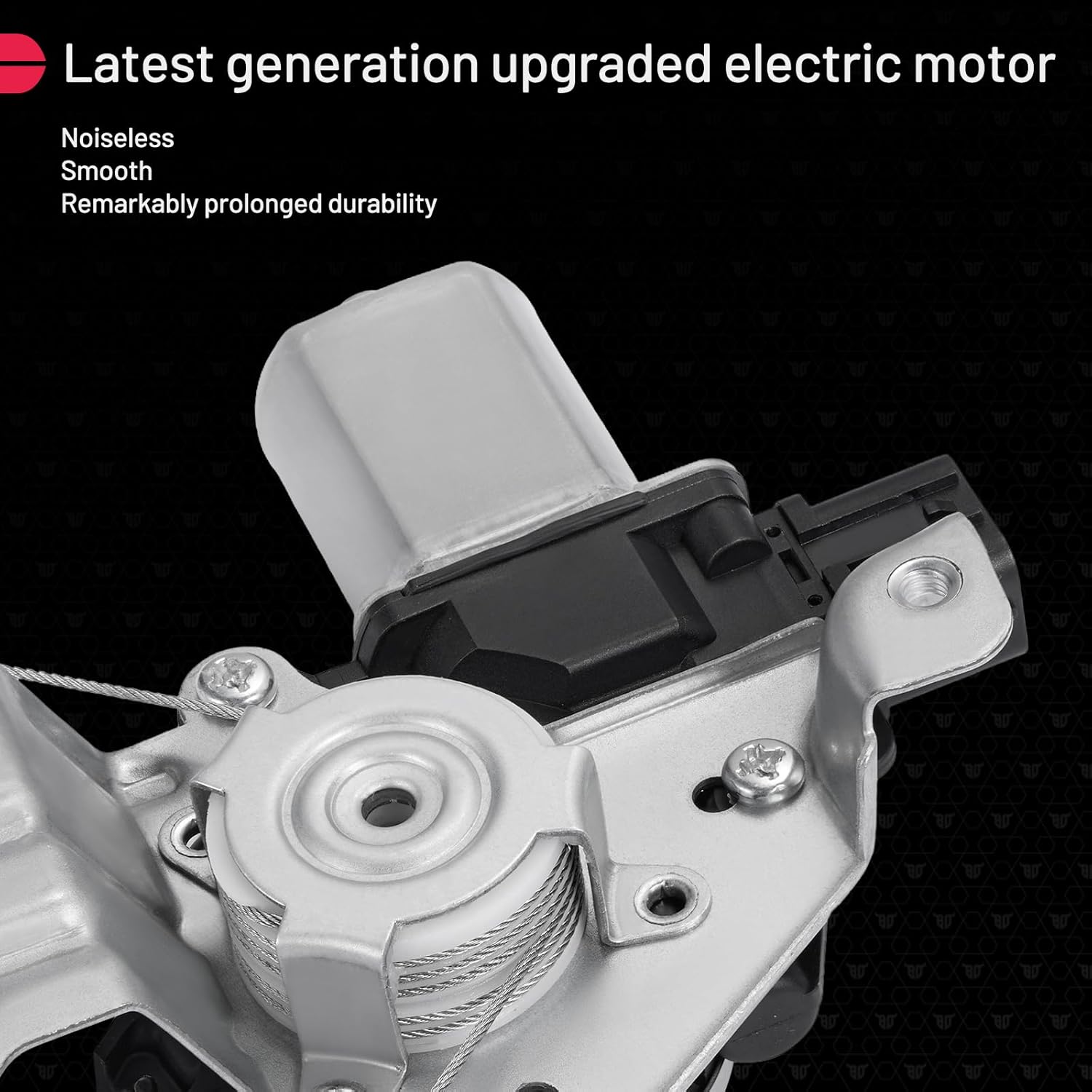 【Premium Quality】 This window regulator and motor assembly feature significant enhancements over the factory part, providing a higher level of reliability. It incorporates tension springs to effectively resist cable reel binding caused by prolonged use. Additionally, it is equipped with advanced cable guides to eliminate high cable tension and reduce cable stress.