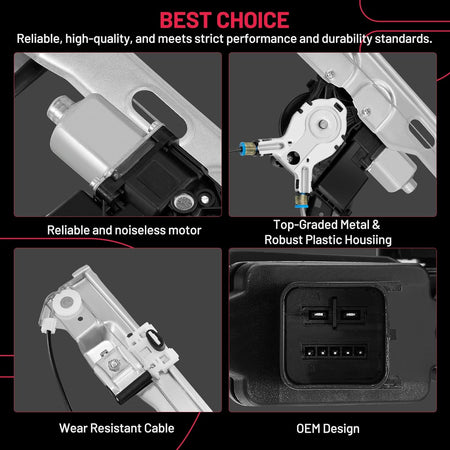 【12-Month Warranty】If the window regulator and the motor fail, crack, stop working, or have any other problems, contact us through amazon message to apply the service of carefree REPLACEMENT.