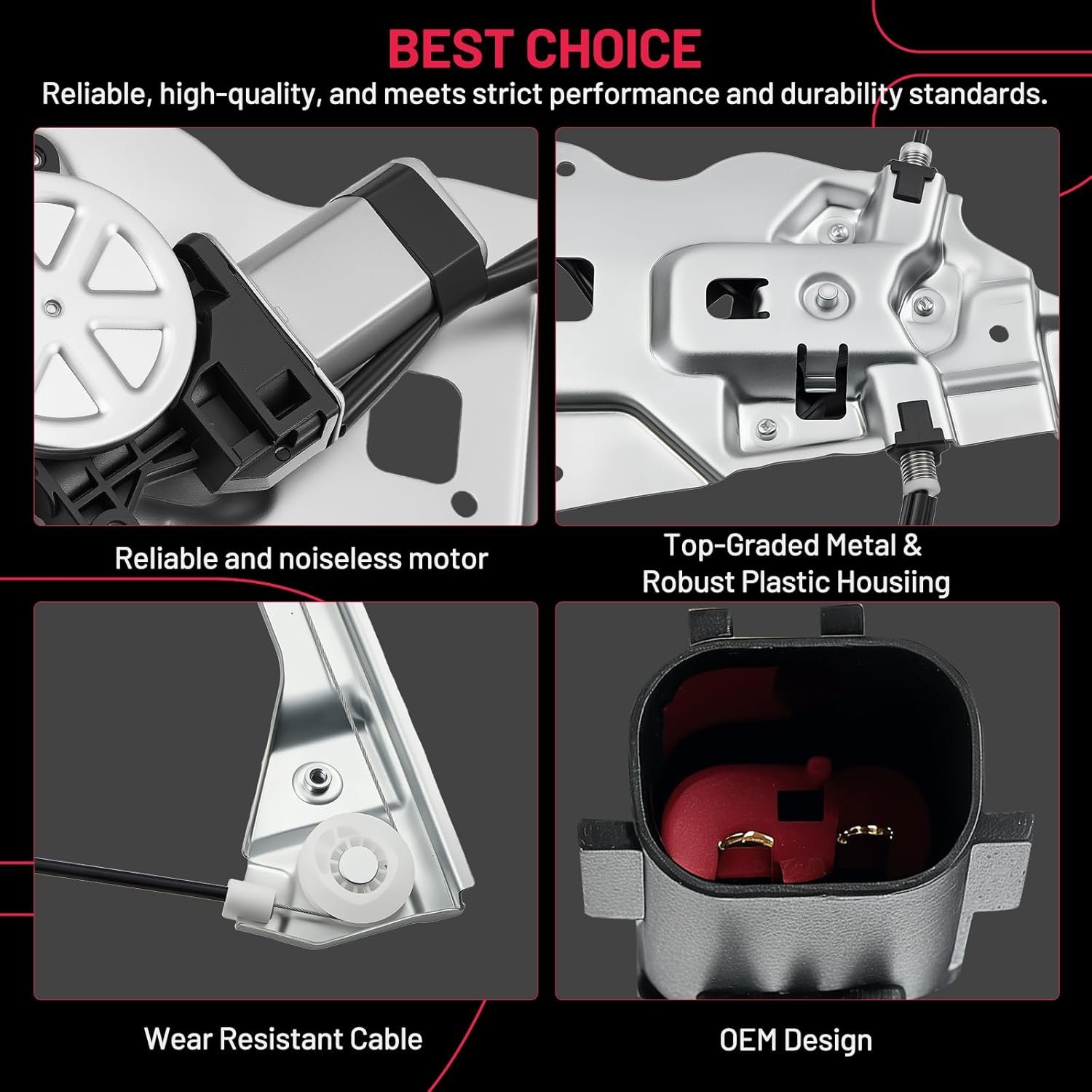 【Premium Quality】 This window regulator and motor assembly feature significant enhancements over the factory part, providing a higher level of reliability. It incorporates tension springs to effectively resist cable reel binding caused by prolonged use. Additionally, it is equipped with advanced cable guides to eliminate high cable tension and reduce cable stress.