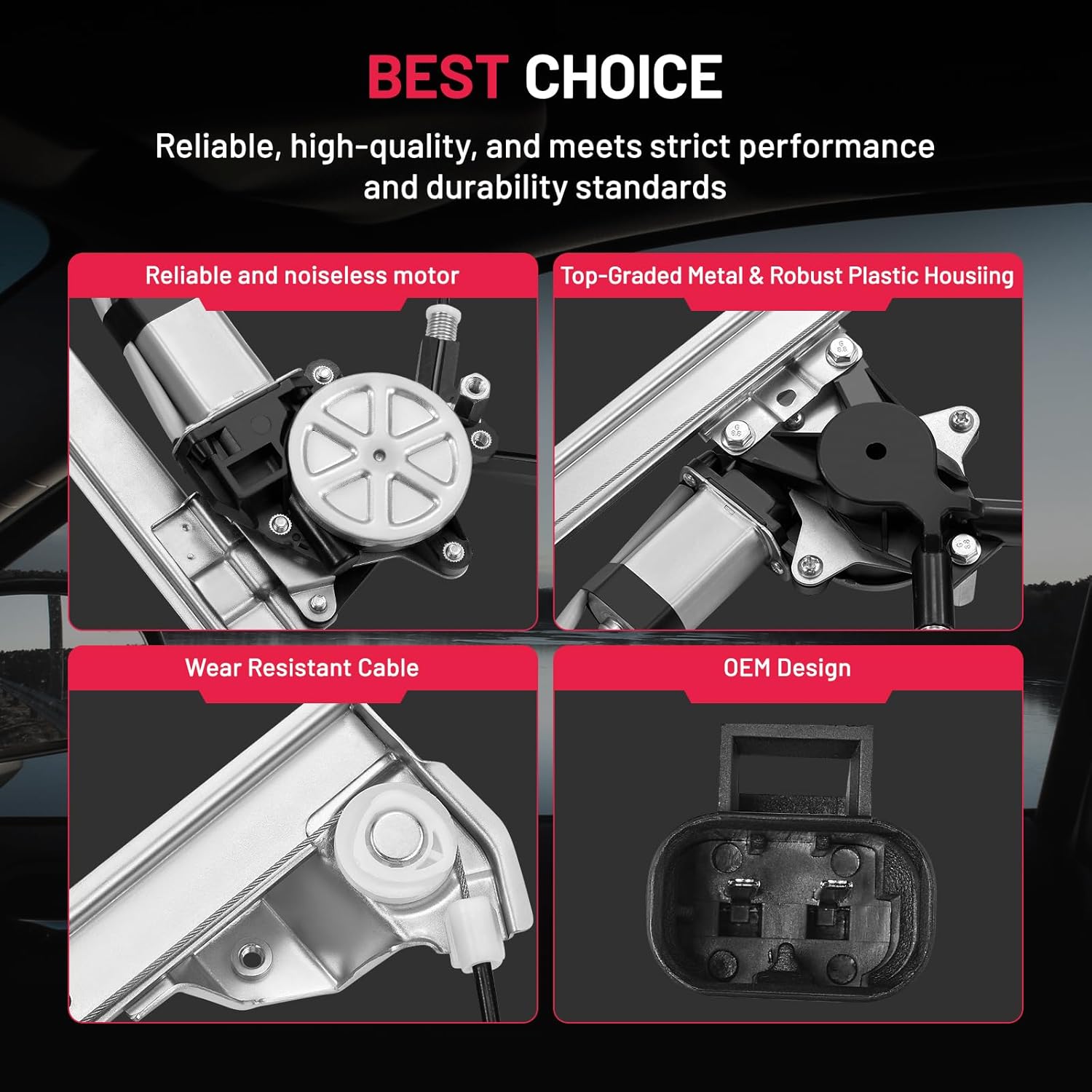 【12-Month Customer Service】If the window regulator and the motor fail, crack, stop working, or have any other problems, contact us through amazon message to apply the service of carefree REPLACEMENT.