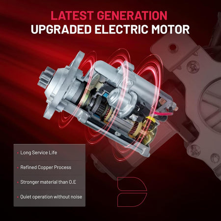 【Premium Quality】 This window regulator and motor assembly feature significant enhancements over the factory part, providing a higher level of reliability. It incorporates tension springs to effectively resist cable reel binding caused by prolonged use. Additionally, it is equipped with advanced cable guides to eliminate high cable tension and reduce cable stress.
