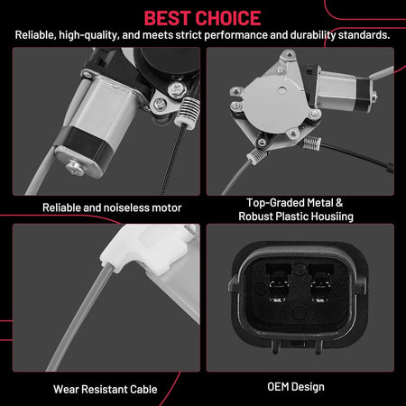 【12-Month Warranty】If the window regulator and the motor fail, crack, stop working, or have any other problems, contact us through amazon message to apply the service of carefree REPLACEMENT.