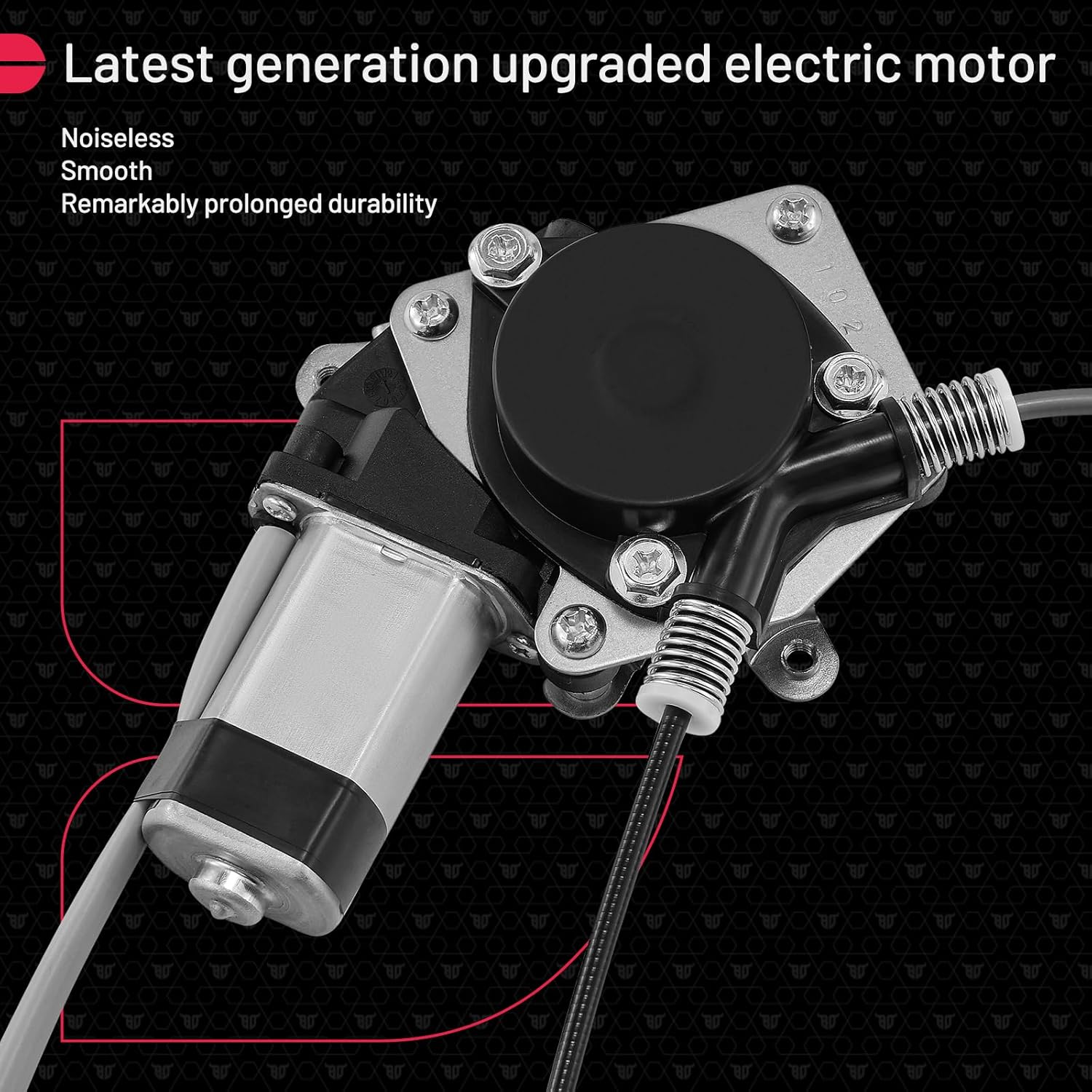 【Premium Quality】 This window regulator and motor assembly feature significant enhancements over the factory part, providing a higher level of reliability. It incorporates tension springs to effectively resist cable reel binding caused by prolonged use. Additionally, it is equipped with advanced cable guides to eliminate high cable tension and reduce cable stress.
