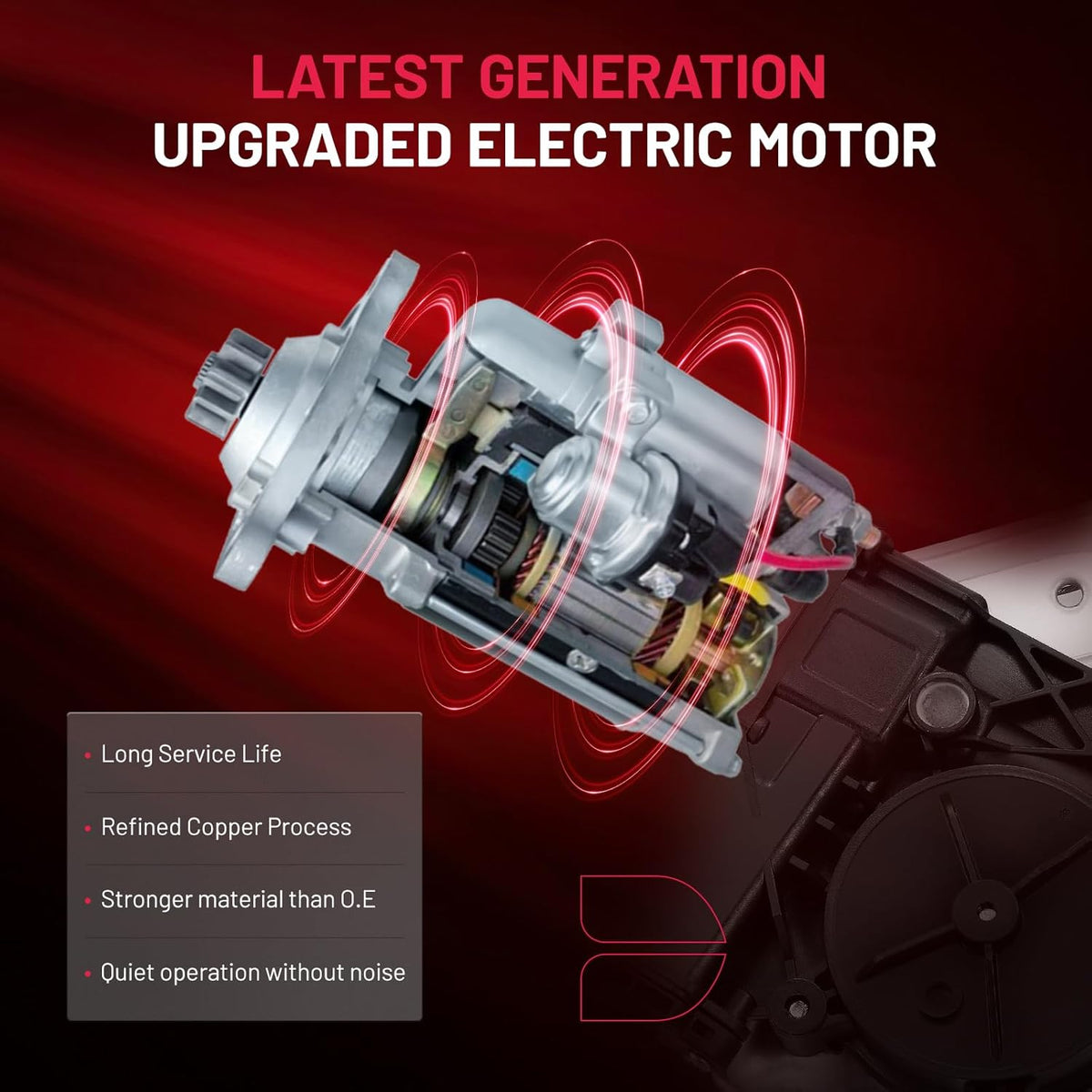 【Premium Quality】 This window regulator and motor assembly feature significant enhancements over the factory part, providing a higher level of reliability. It incorporates tension springs to effectively resist cable reel binding caused by prolonged use. Additionally, it is equipped with advanced cable guides to eliminate high cable tension and reduce cable stress.