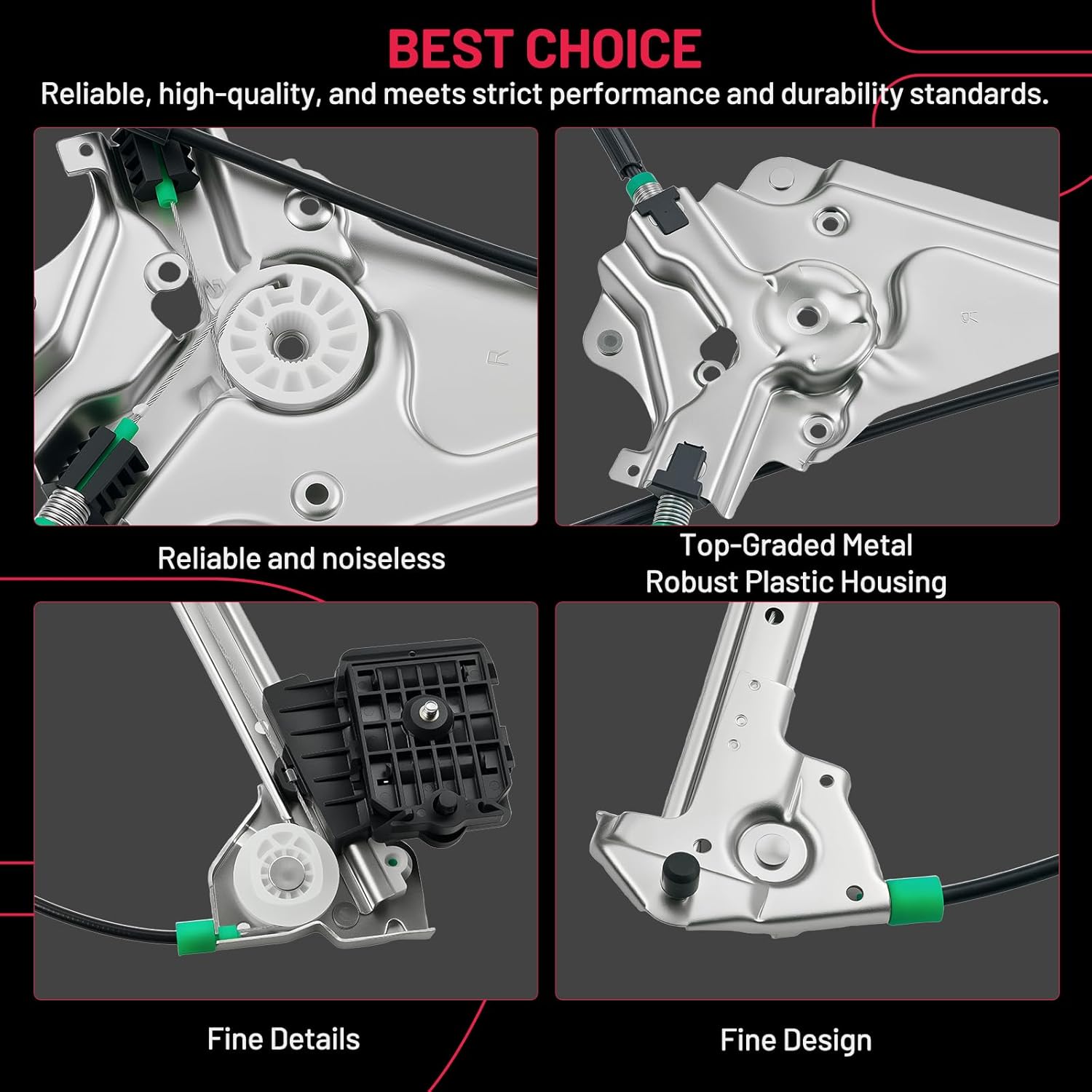 【Premium Quality】 This window regulator and motor assembly feature significant enhancements over the factory part, providing a higher level of reliability. It incorporates tension springs to effectively resist cable reel binding caused by prolonged use. Additionally, it is equipped with advanced cable guides to eliminate high cable tension and reduce cable stress.