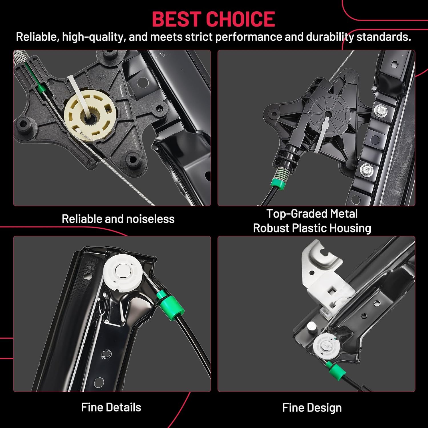 【Premium Quality】 This window regulator and motor assembly feature significant enhancements over the factory part, providing a higher level of reliability. It incorporates tension springs to effectively resist cable reel binding caused by prolonged use. Additionally, it is equipped with advanced cable guides to eliminate high cable tension and reduce cable stress.