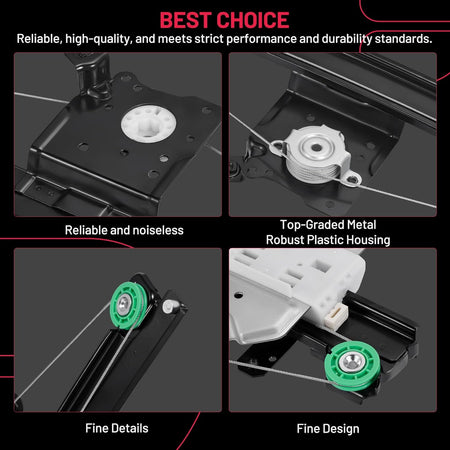 【Premium Quality】 This window regulator and motor assembly feature significant enhancements over the factory part, providing a higher level of reliability. It incorporates tension springs to effectively resist cable reel binding caused by prolonged use. Additionally, it is equipped with advanced cable guides to eliminate high cable tension and reduce cable stress.