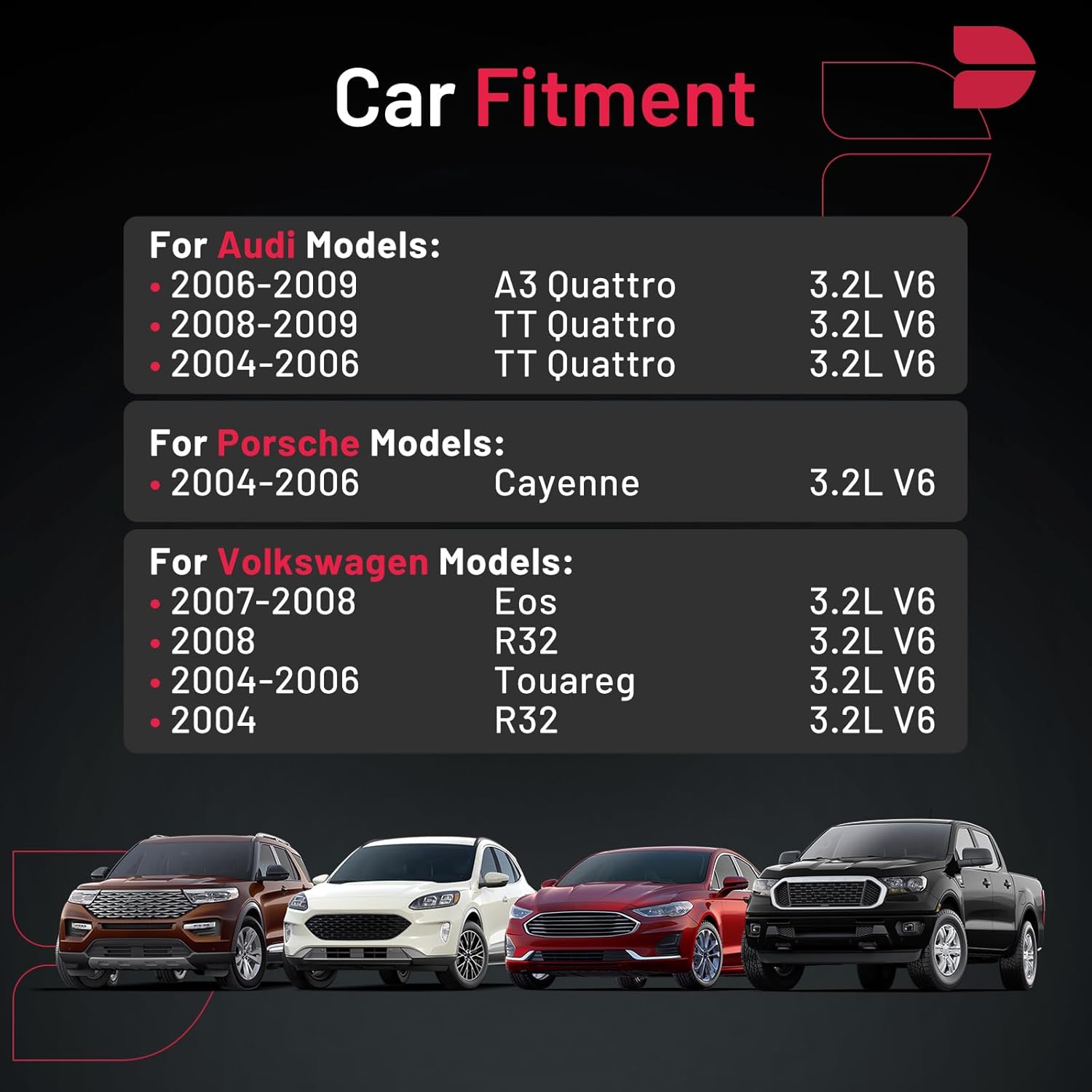【Compatibility Information】:Spark Plug 7563 Compatible with Audi 2006-2009 A3 Quattro, 2004-2006 TT Quattro, 2008-2009 TT Quattro; Compatible with Porsche 2004-2006 Cayenne; Compatible with Volkswagen 2007-2008 Eos, 2004 R32, 2008 R32, 2004-2006 Touareg.Please see images or details page for complete Compatibility information.